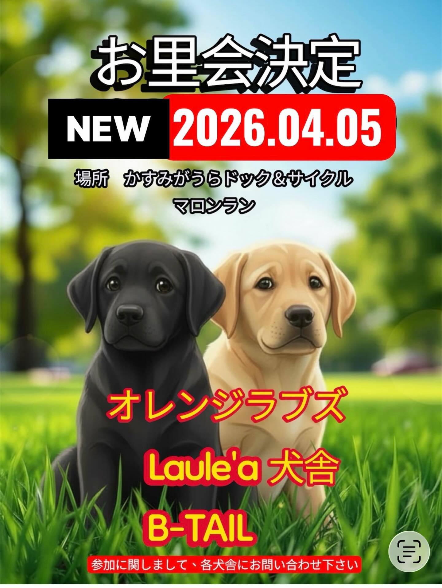6. 参加希望の方は オレンジ ラブズ のLINEかInstagram、ラウレア、B-TAIL各犬舎に人数、頭数をご連絡下さい。